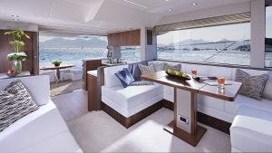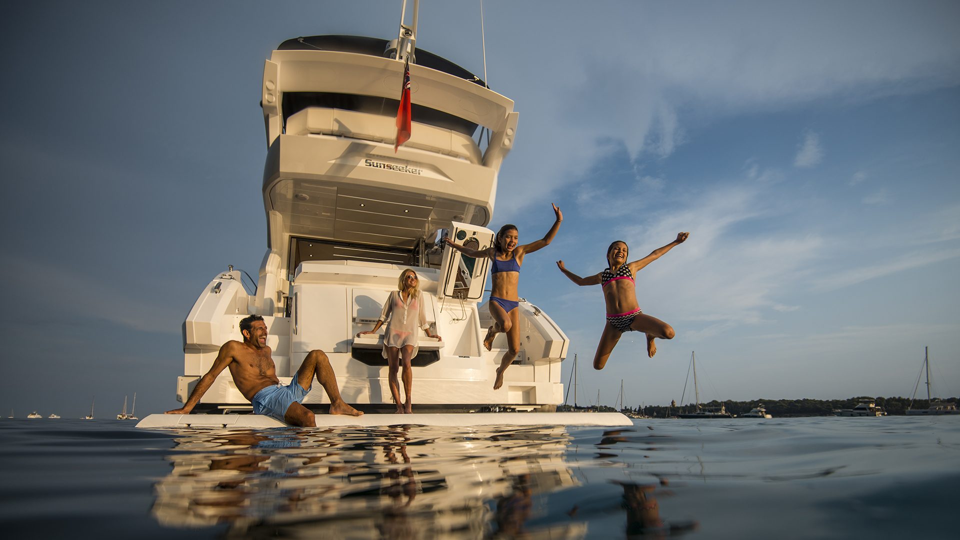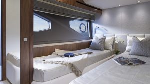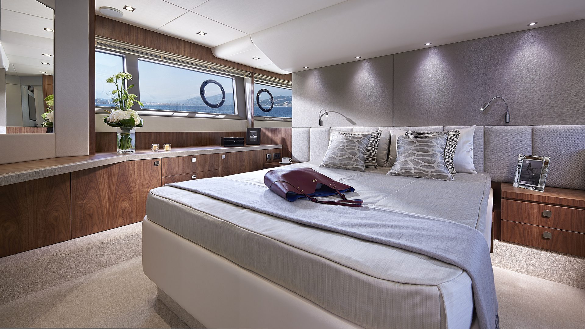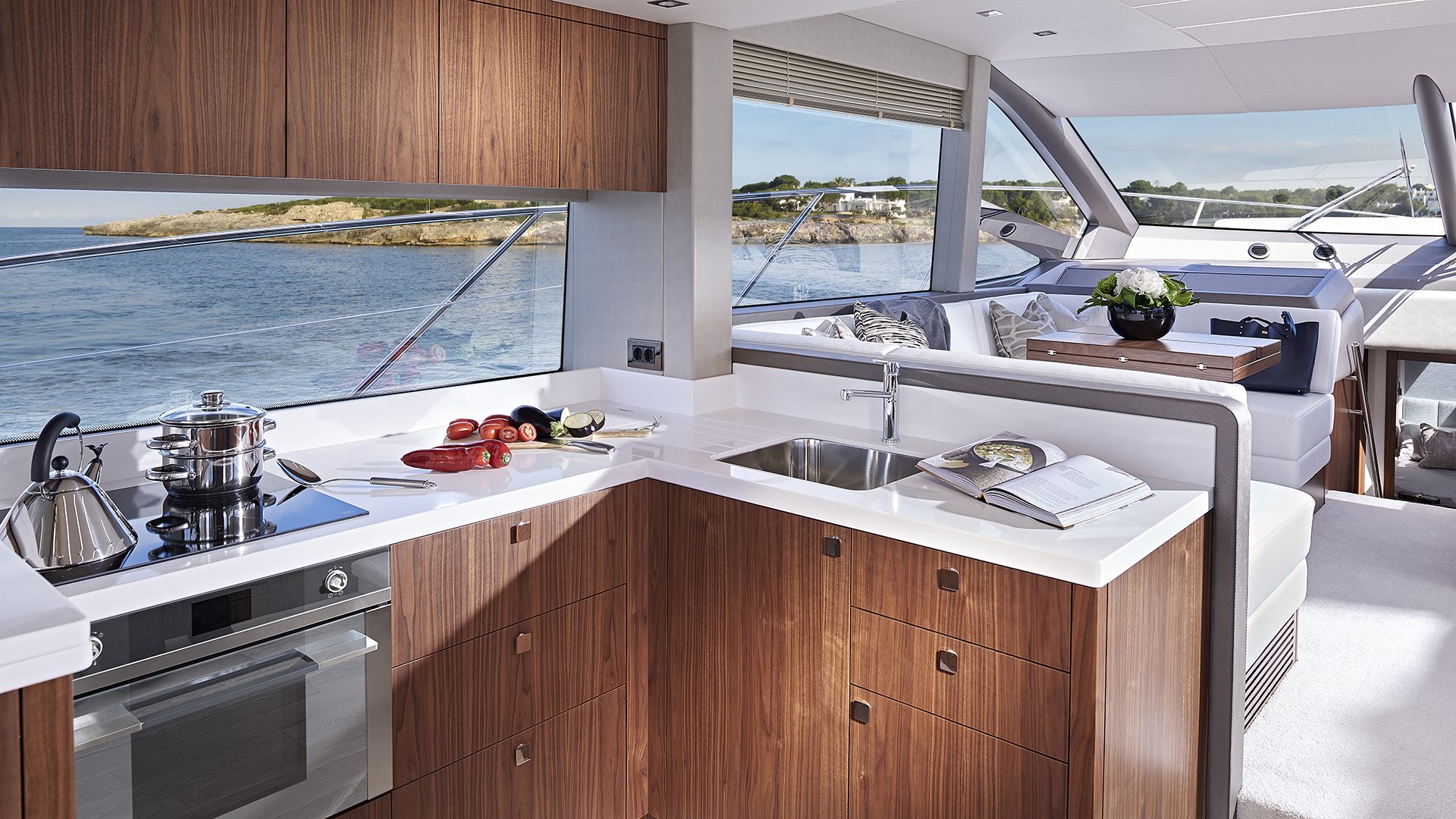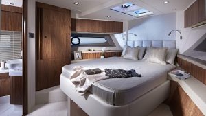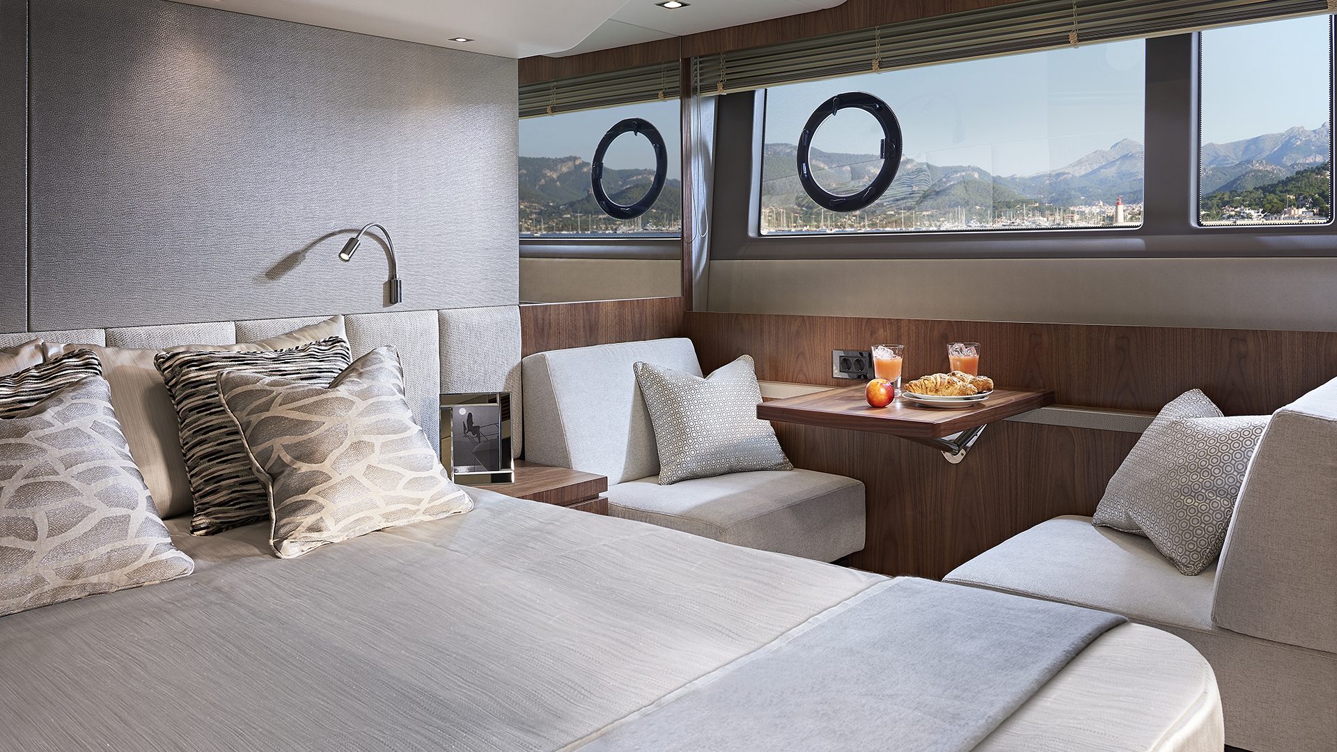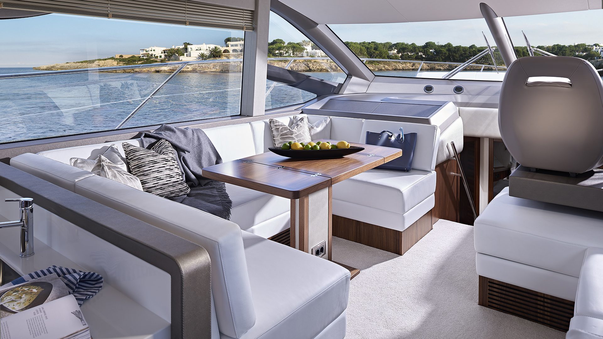 Raum, Helligkeit und Geselligkeit – dafür steht die neue Manhattan 52. Das innovative Design ist durchweg auf geräumige Wohnlichkeit ausgerichtet und setzt im Segment der kleineren Flybridge-Motoryachten neue Standards. Durchweg haben wir bei der neuen Manhattan 52 den Wohn- und Freizeitbereichen Priorität gegeben und großflächig schöne Formglasscheiben verarbeitet, um die schlanke Linie zu betonen und noch mehr Licht ins Innere zu bringen. Überall auf dem Hauptdeck sind so herrliche Bereiche für das gesellige Beisammensein entstanden, die von der erstaunlich geräumigen Sitzgruppe und dem Sonnenbadebereich bis hin zum offenen Cockpit und der oberen Galerie des Achterdecks reichen.