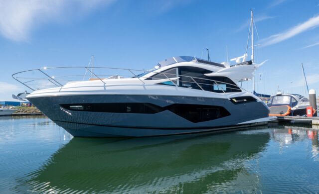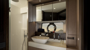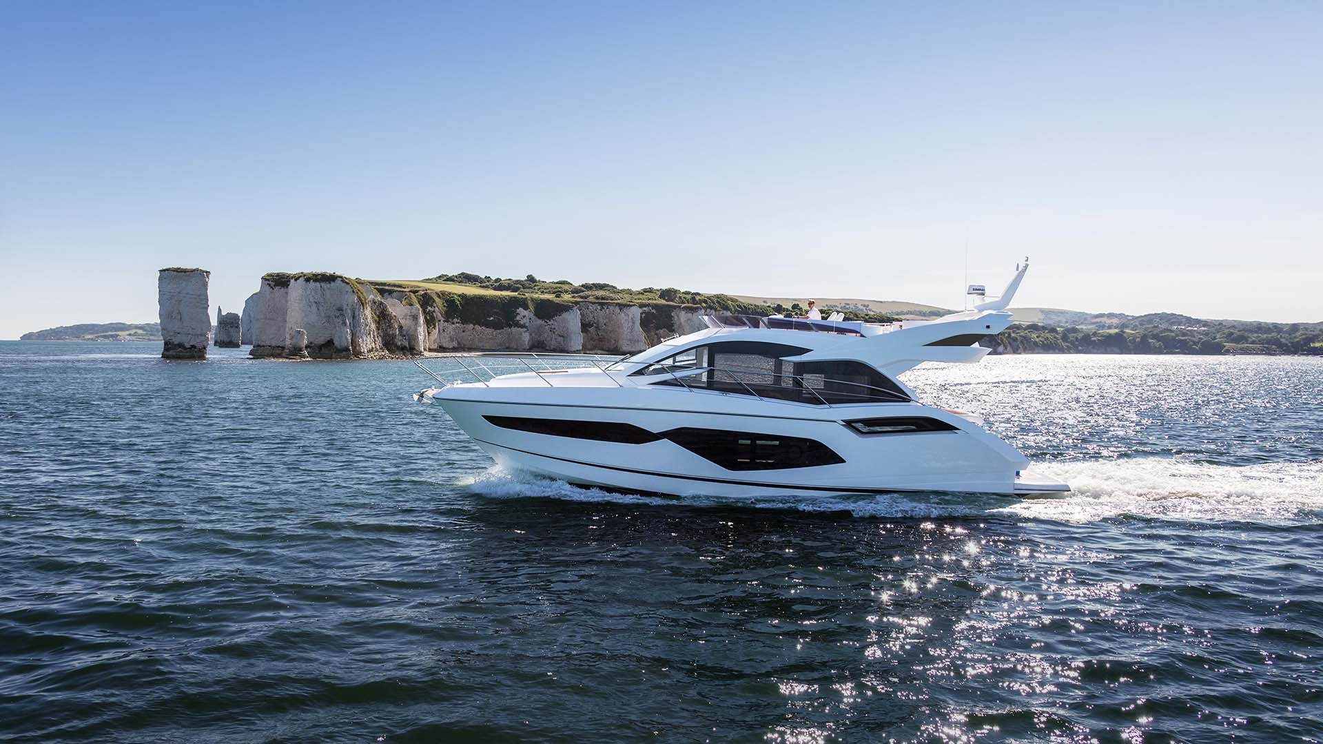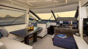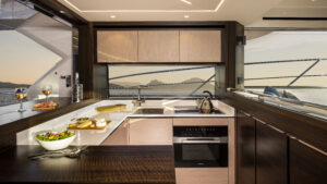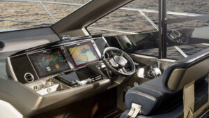 Das Außendesign mit unvergleichlich viel gebogenem Glas und Edelstahldetails unterstreicht die Leistungsfähigkeit der Yacht, während exklusive Bilder das innovative Design und die Liebe zum Detail, die in dieses neue Flybridge-Modell eingeflossen sind, offenbaren.