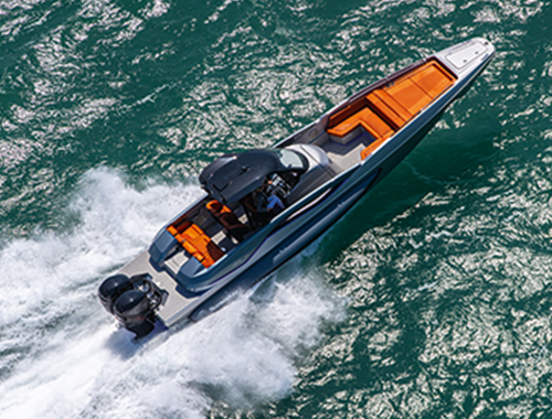 El nuevo modelo es capaz de alcanzar 70 mph (62kts) sin problemas con los fuerabordas estándar Mercury 400R acoplados a los aceleradores digitales Mercury Racing Digital Zero Effort. El casco se ha optimizado para aprovechar la última tecnología de motor fuera de borda, lo que proporciona rendimiento y un mantenimiento de bajo coste.
