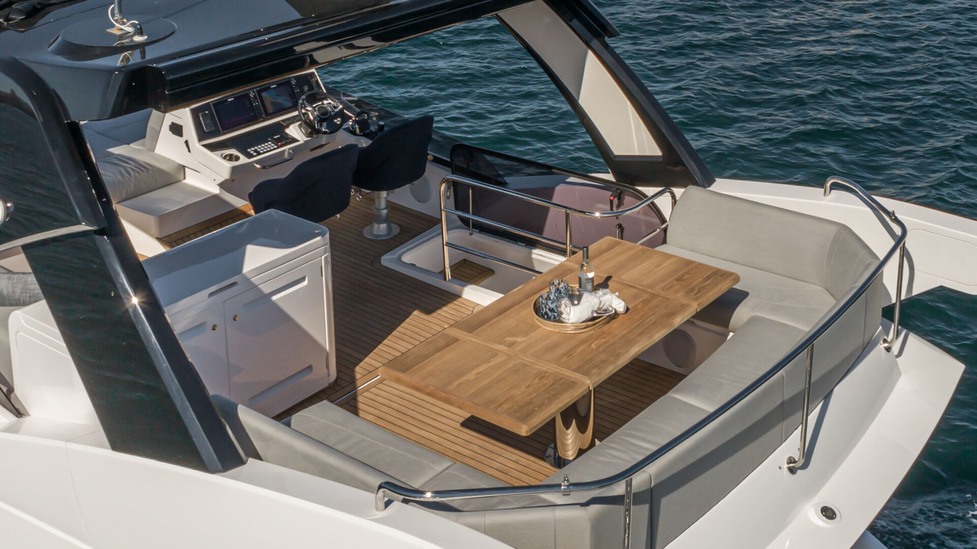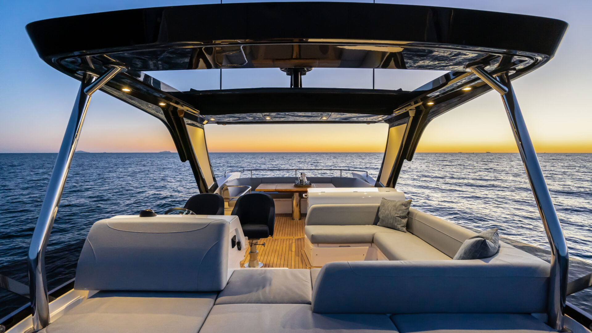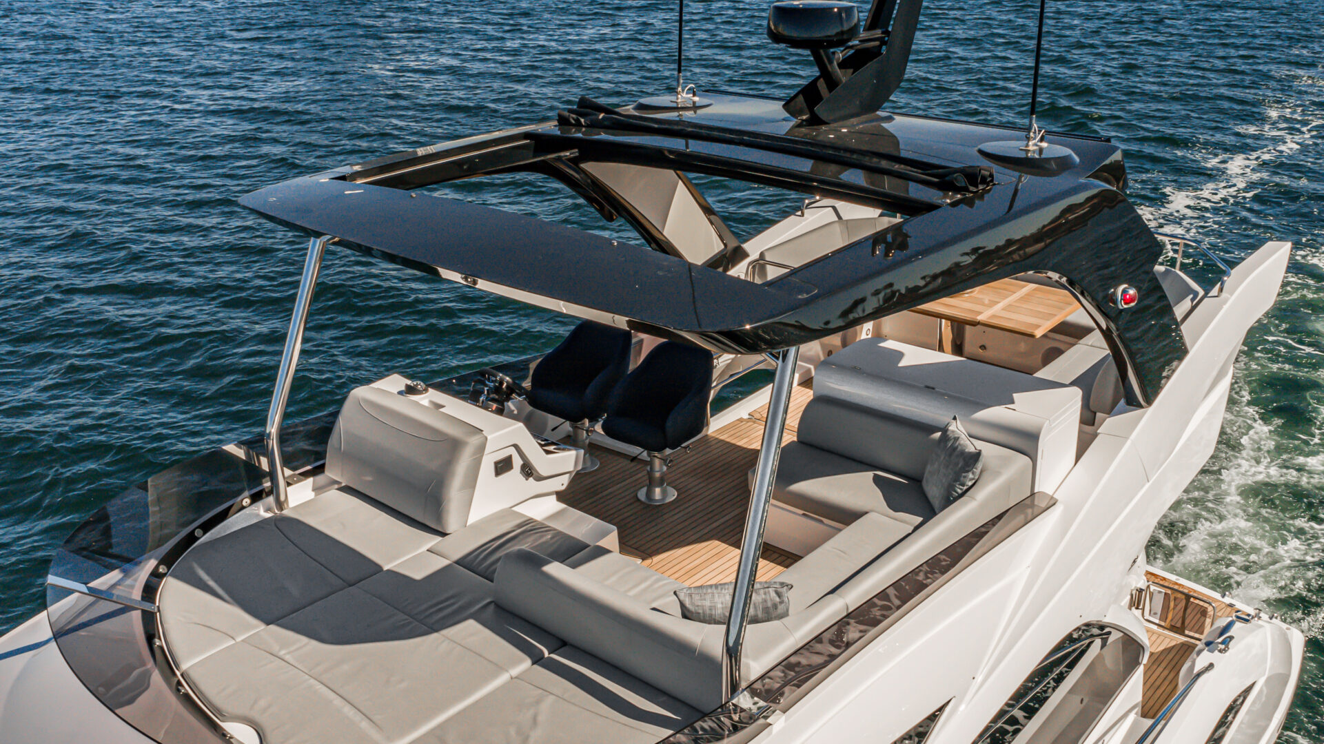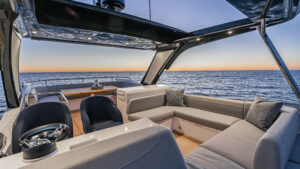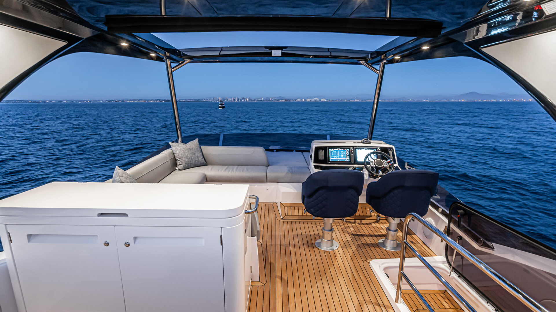 The exterior styling incorporates unparalleled amounts of curved glass and stainless-steel detailing to emphasise its prowess, whilst exclusive images reveal the innovative design and attention to detail that has gone into this new flybridge model.
