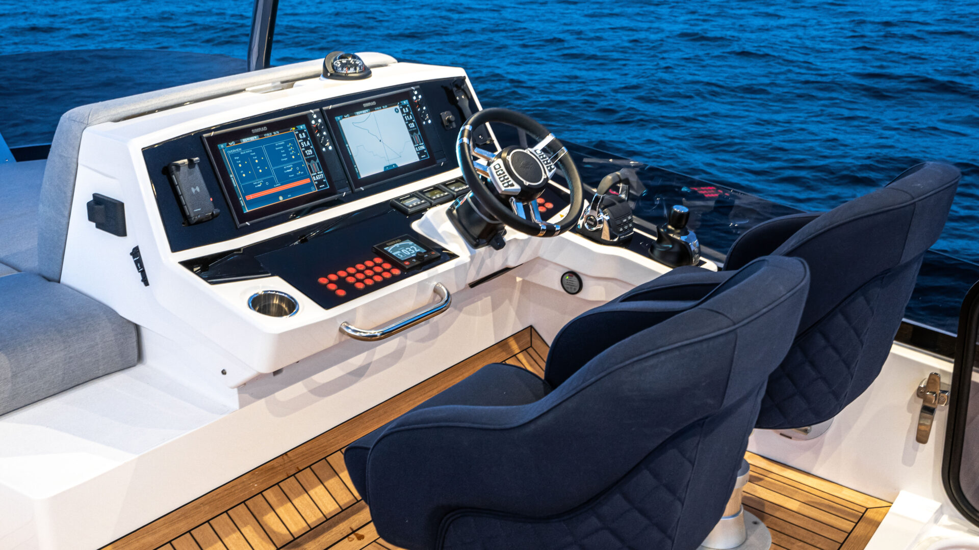 A key feature that truly sets the Manhattan 55 apart from its peers is the innovative powered glass cockpit/galley window that can be lowered at the touch of a button and which, alongside the open cockpit door, creates a truly exceptional inside/outside environment.
