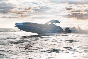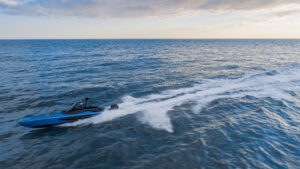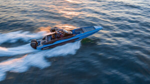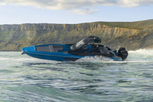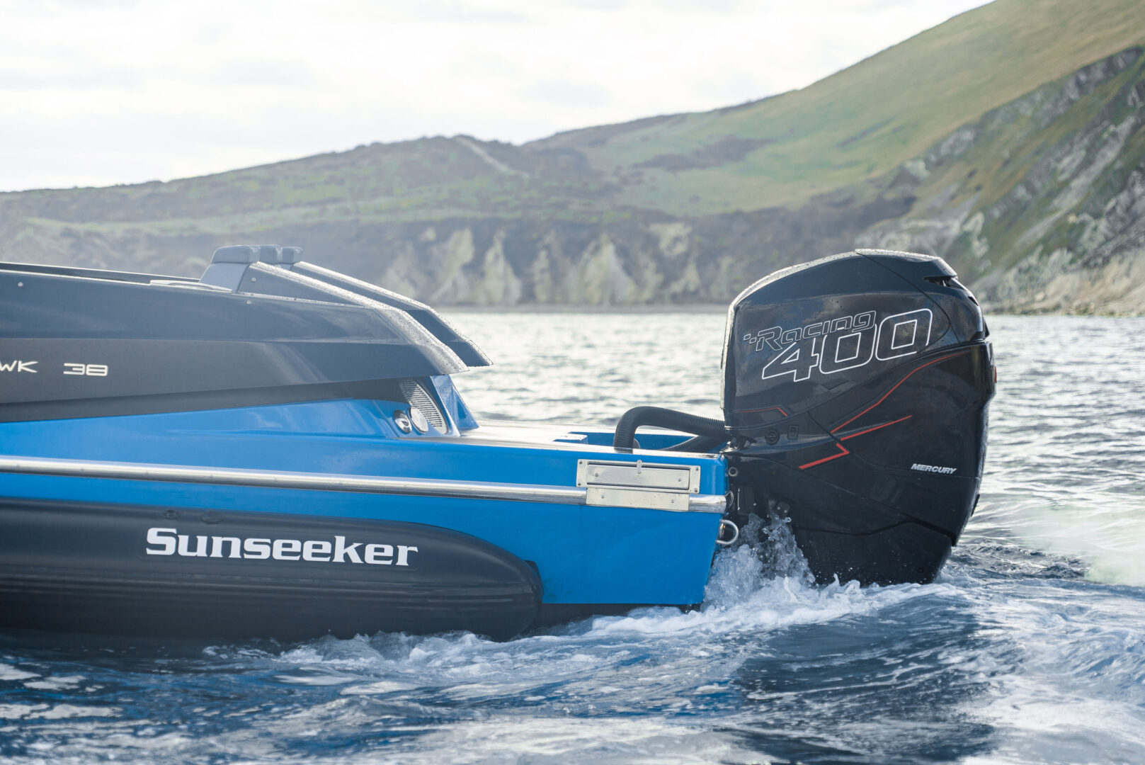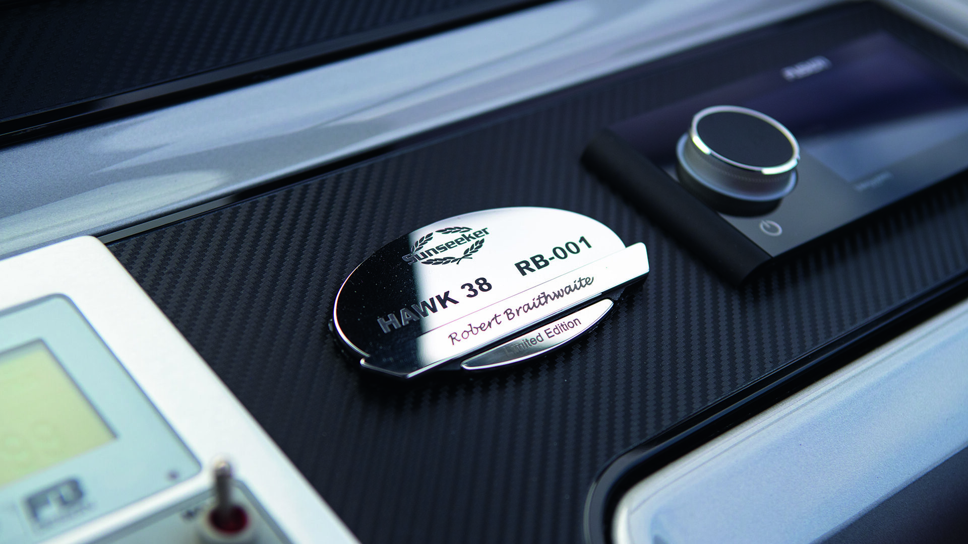 Запатентованный корпус с носом типа «антидайв» сделан из структурной пены и оптимизирован в соответствии с современными технологиями производства подвесных моторов — в стандартной комплектации предлагается пара Mercury R400 с дросселями Mercury Racing Digital Zero Effort. В распоряжении гостей имеется место для загара, U-образный диван вокруг столика из карбона, туалетная комната, четыре спортивных кресла с валиками (разработанные Fabio Buzzi Design специально для того, чтобы наслаждаться скоростью и манёвренностью катера) и самоосушающаяся купальная платформа из композита платинового цвета. А в отсеках для хранения помещаются два скутера Seabob и надувной паддлборд. Словом, Sunseeker Hawk 38 — идеальный уикендер для тех, кто любит и скорость, и комфорт.