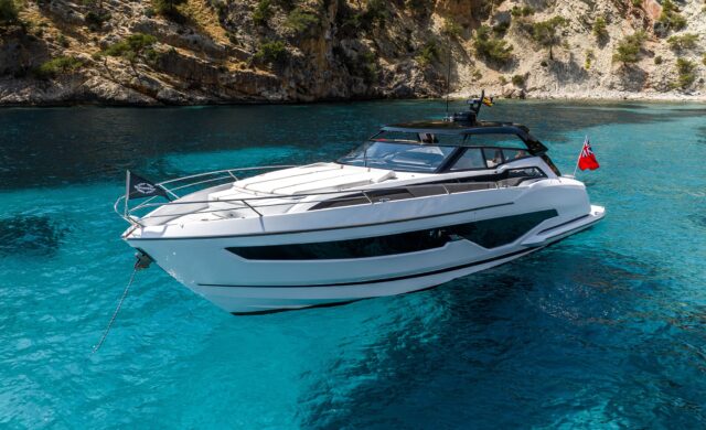 The exterior styling incorporates unparalleled amounts of curved glass and stainless-steel detailing to emphasise its prowess, whilst exclusive images reveal the innovative design and attention to detail that has gone into this new flybridge model.
