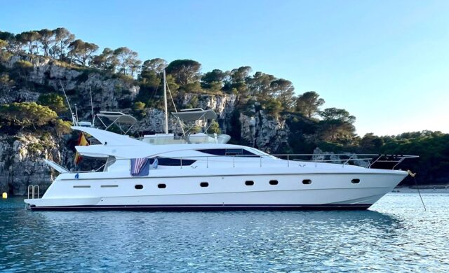 Elegant, sporty, and perfectly equipped, this Sunseeker Portofino 48 combines performance and comfort on board. With its opening hardtop, hydraulic swim platform, and tender garage accommodating a Williams 325 dinghy, it stands out for its Mediterranean spirit, ideal for cruising with family or friends.